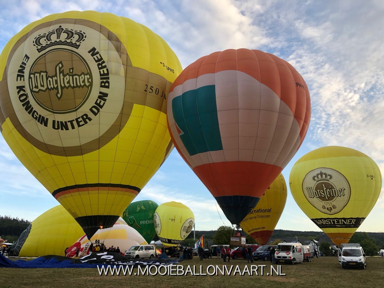 Ook dit jaar was MooieBallonvaart weer aanwezig bij hét ballonvaart evenement in Duitsland. De Warsteiner Montgolfiade 2019 wordt jaarlijks gehouden rond het eerste weekend van september. Dit jaar was Wiep Keikes het hele evenement aanwezig afgewisseld met meerdere piloten en crewleden! Marije Roozendaal en Marieke Schoonridder sloten aan als piloten en verschillende crewleden die aankwamen en ook gingen. Het eerste weekend was het lekker weer om te kunnen ballonvaren. Doordeweeks helaas meerdere dagen dat het weer het niet toeliet om met de ballon de lucht in te gaan. Net voor het 2e weekend was er nog de vrijdag dat er zowel 's ochtends als 's avonds een prachtige ballonvaart gemaakt kon worden. Marije en Marieke vertrokken die avond met onze bekende oranje luchtballon. Wiep kon een collega ballonvaarder uit Nederland uit de brand helpen en vaarde een 6 persoons luchtballon. Het was ondanks het weer toch weer een prachtige editie van de Warsteiner Montgolfiade!