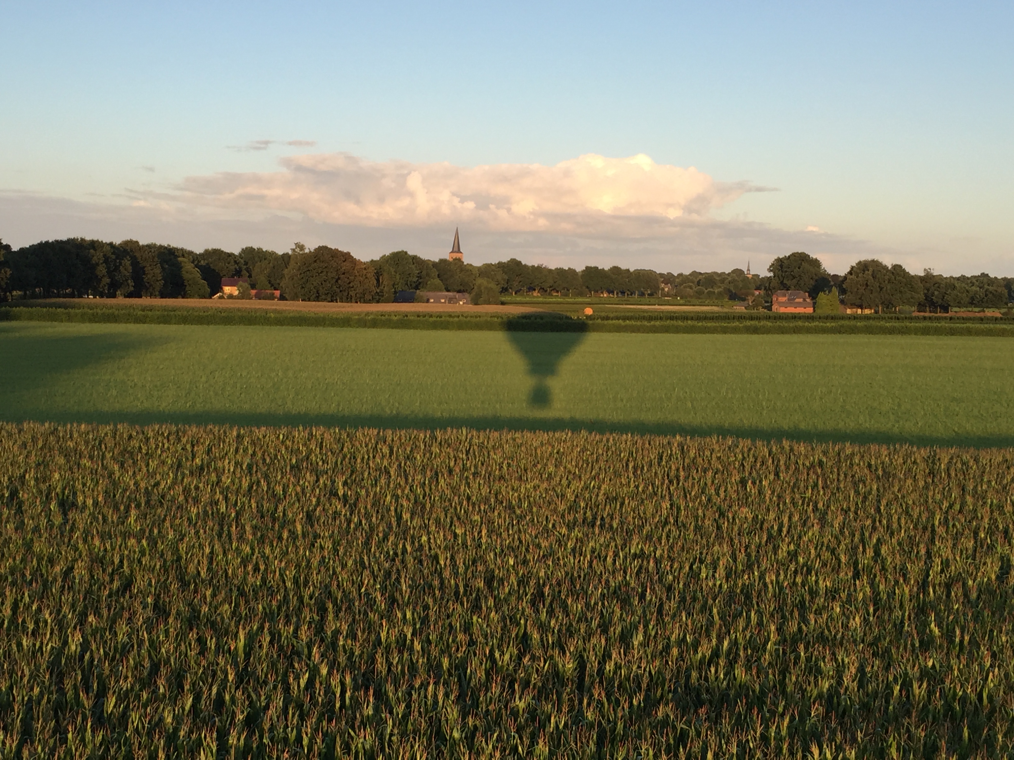 Vertrokken vanuit Zutphen met de luchtballon. We zijn over het Bronsbergermeer gevaren naar Hengelo gld. Daar maakten wij een tussenstop. Vanuit Hengelo zijn wij verder gevaren en uiteindelijk geland in Zelhem. Een mooie lange gezellige ballonvaart.